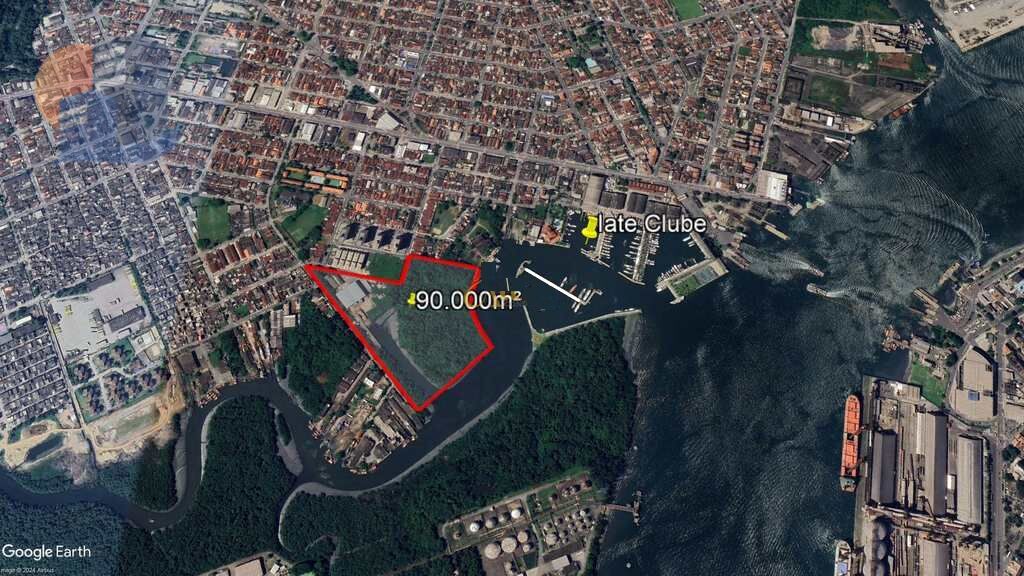 Situada ao lado do Iate Clube de Santos e a poucos minutos da entrada do Porto de Santos/Guarujá, esta área oferece acesso fluvial direto ao canal do maior porto da América Latina – uma das regiões mais valorizadas para operações logísticas e náuticas no Brasil.